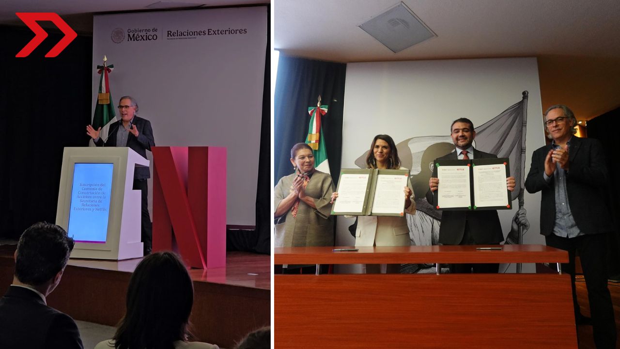 La Secretaría de Relaciones Exteriores (SRE) y la empresa Netflix firmaron un convenio de concertación de acciones para promover internacionalmente producciones audiovisuales que resaltan la cultura, las artes, los paisajes y el turismo de México. Las representaciones diplomáticas del país en el exterior difundirán estas obras como parte de una estrategia de posicionamiento cultural dirigida a audiencias globales.