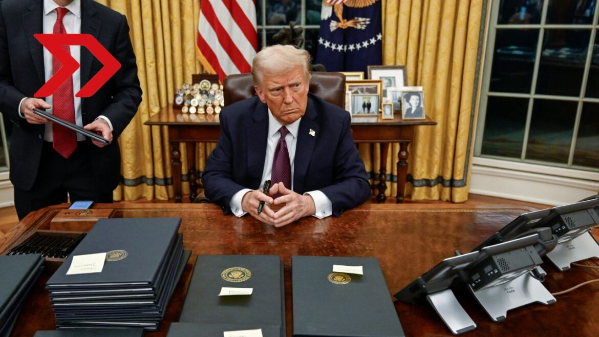 Este lunes 20 de enero de 2025, en su primer día en la Casa Blanca, el presidente de los Estados Unidos, Donald Trump, durante la firma de órdenes ejecutivas en la Oficina Oval, anunció que implementará aranceles del 25% a México y Canadá.