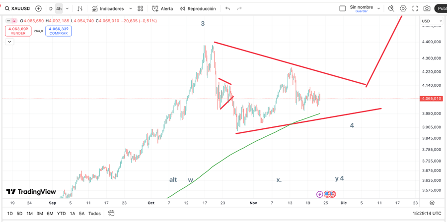 - Oro y plata, sosteniéndose en torno a USD 4.060 y USD 50 respectivamente.